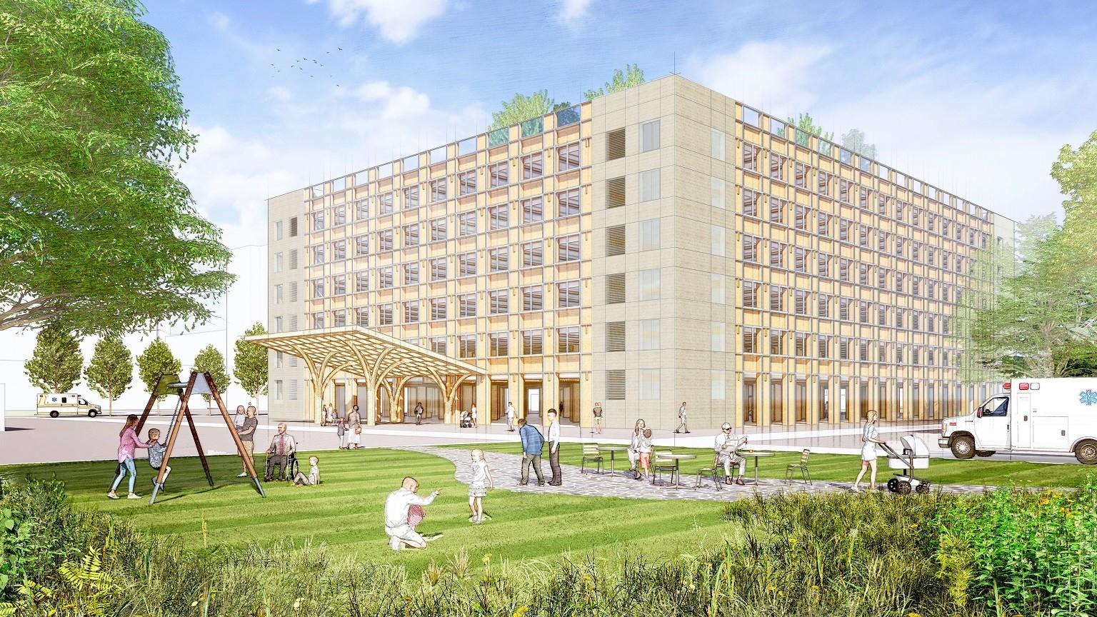 • Danylo Kinash – Chief Architect and Head of the Architecture Department at abmk (Lviv). He leads medical, commercial and public projects and is involved in the wooden hospital project developed with Shigeru Ban Architects. He also contributed to the renovation of an existing hospital, including a two-storey CLT superstructure serving as a prototype for the planned wooden hospital.