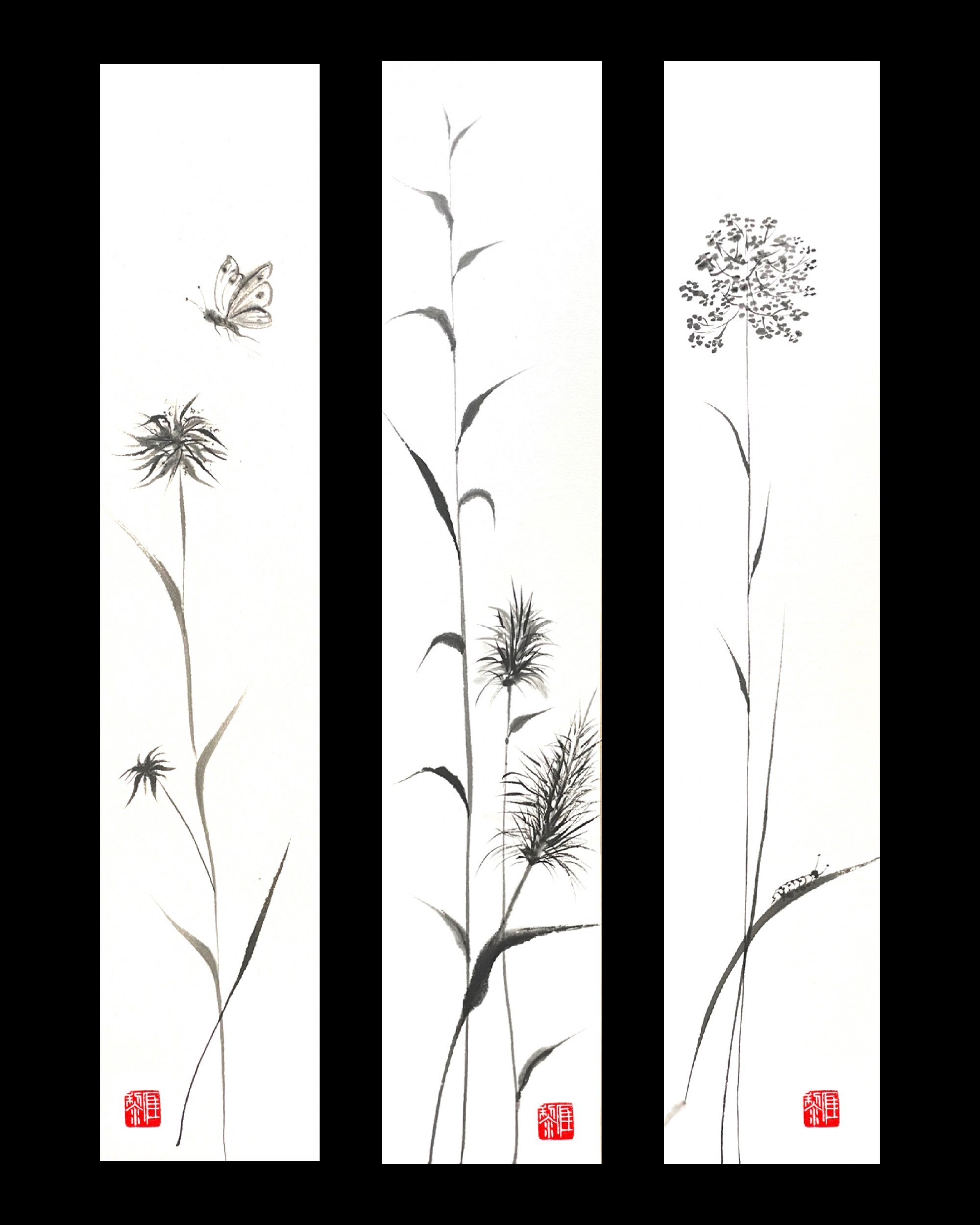 – połączenie różnych rodzajów pociągnięć pędzla w namalowaniu m.in. bambusa, ptaków, traw, krajobrazu, itd.,